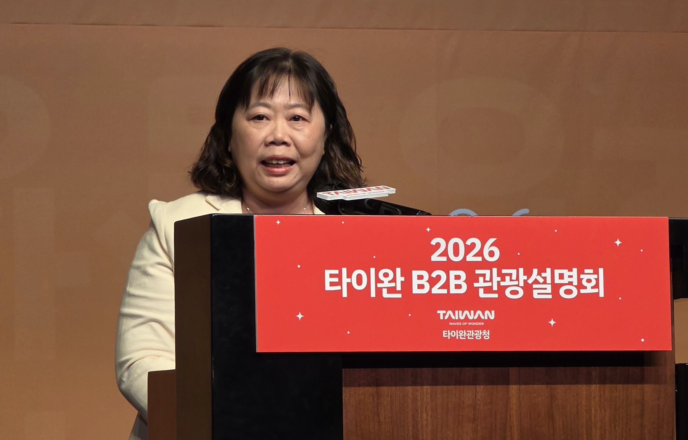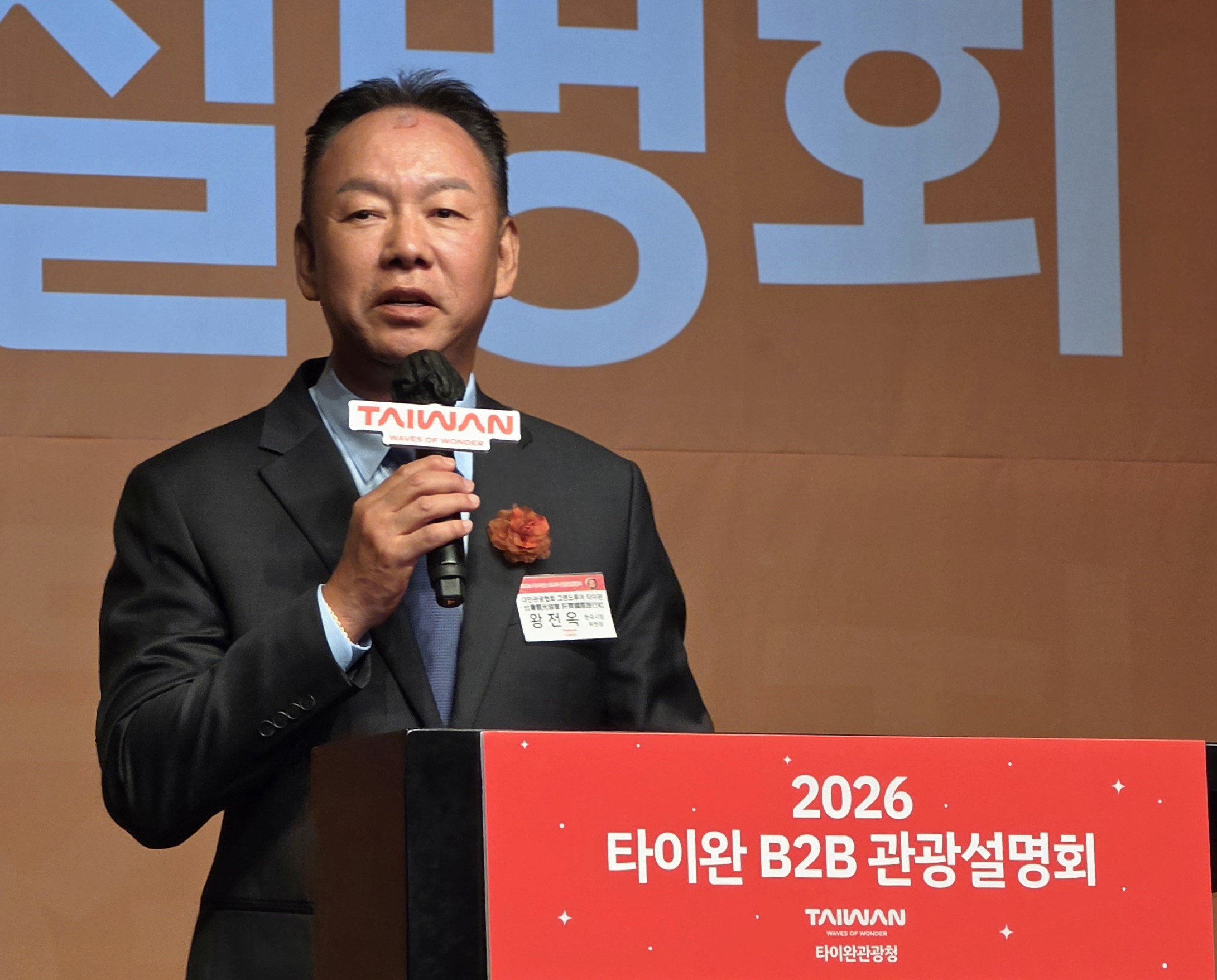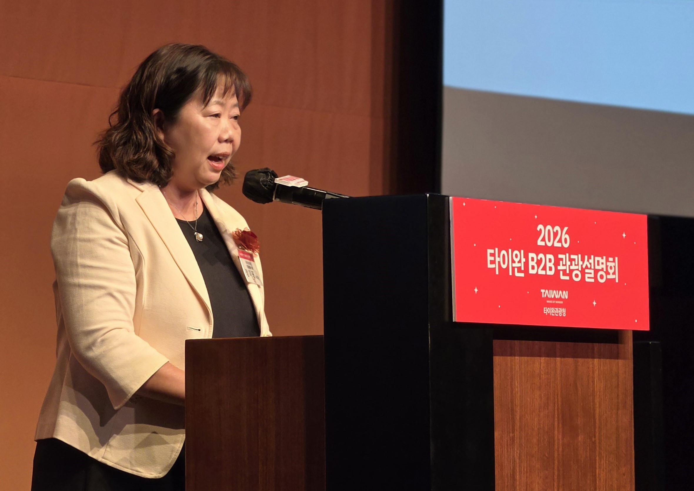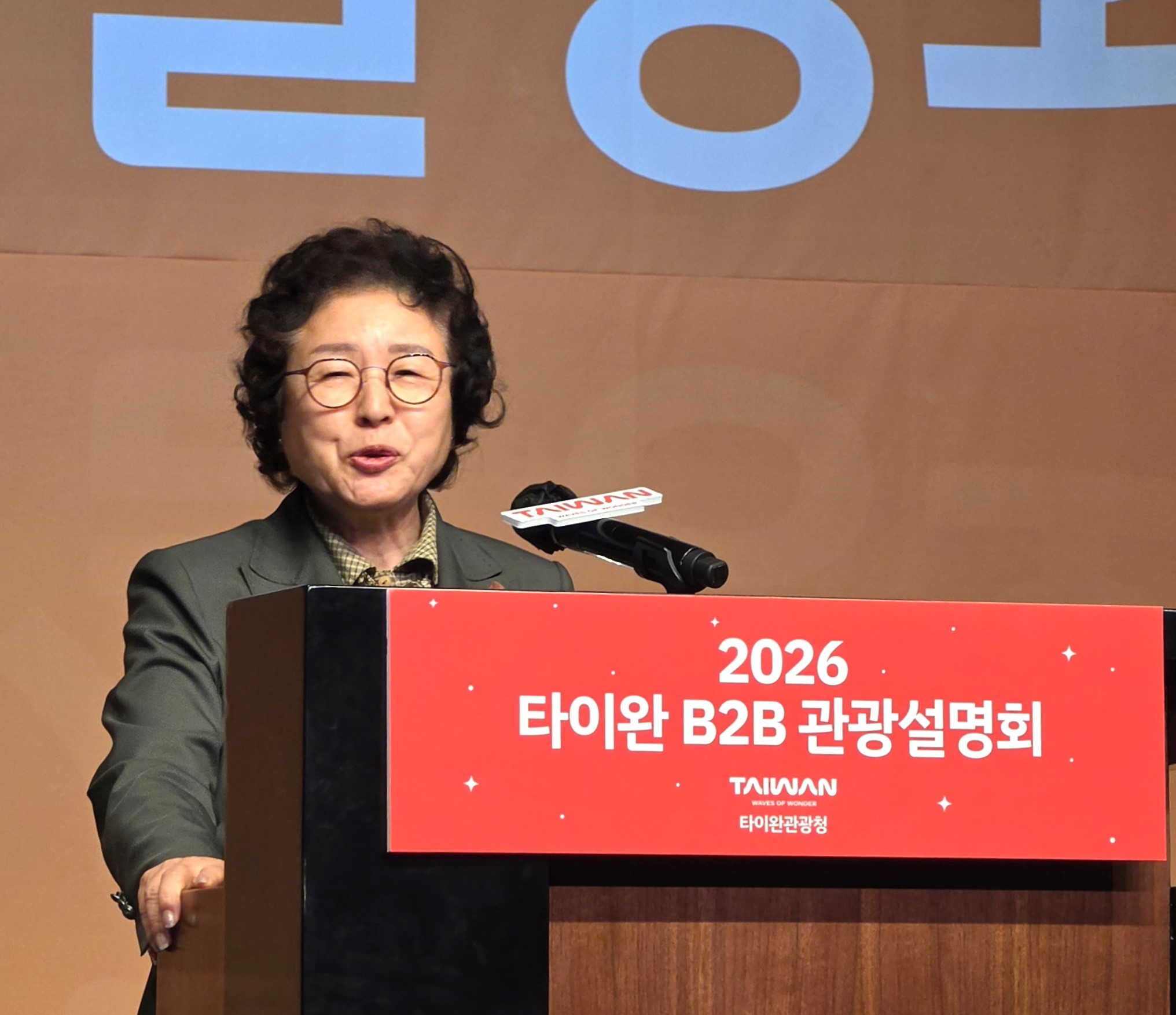 '2026 타이완 B2B 관광 설명회'에서 축사를 하고 있는